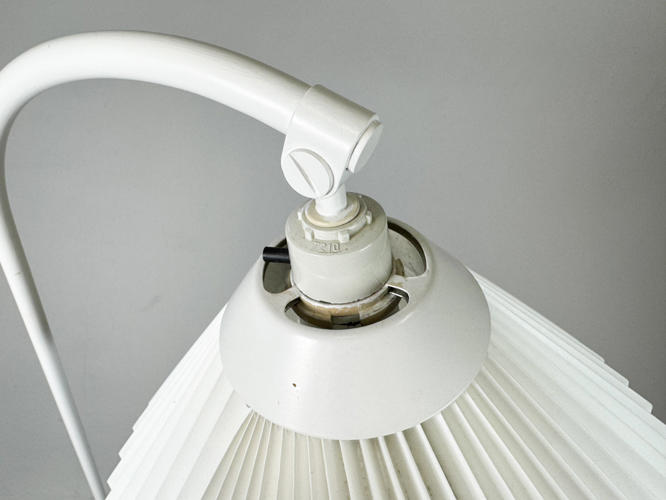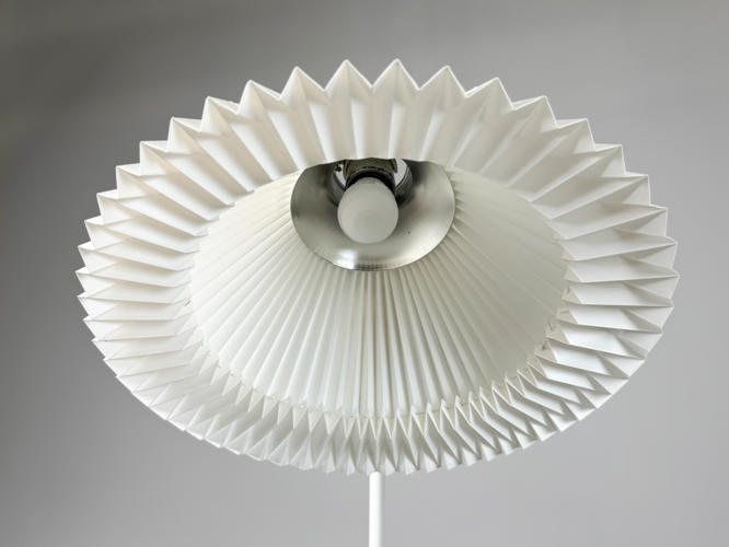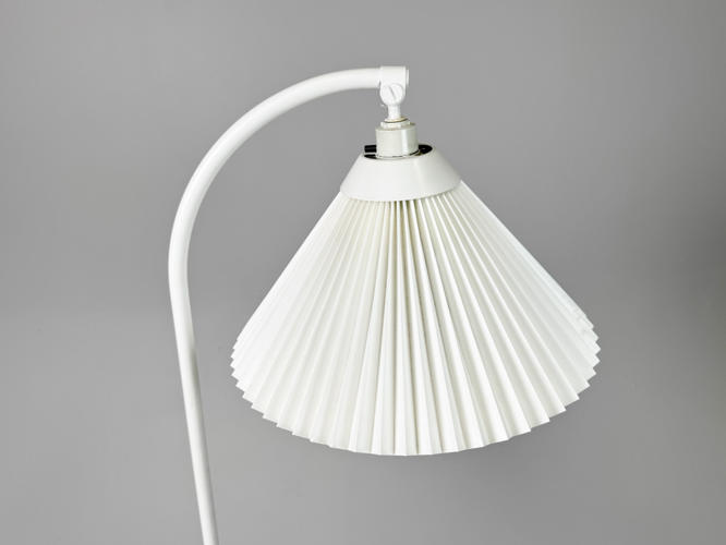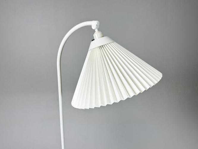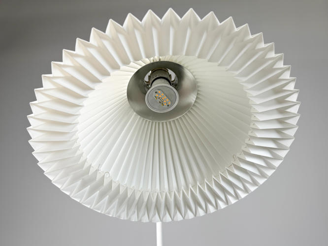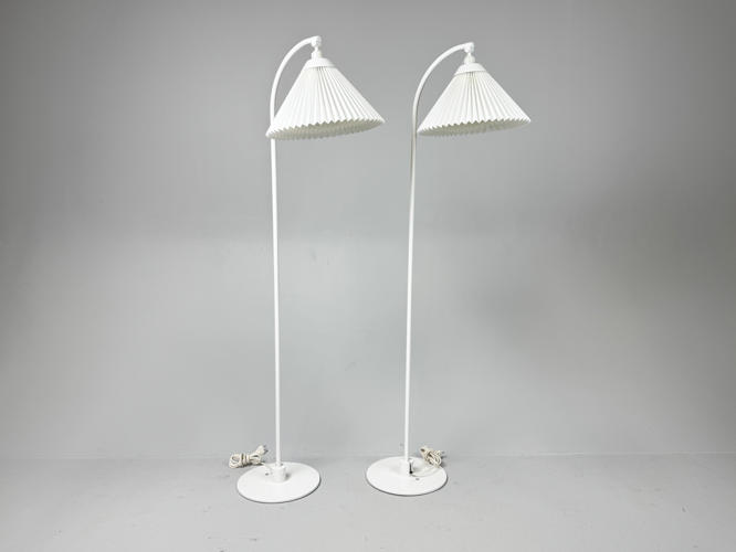 Pair of floor lamps. Model 368. Frames of later white lacquered metal. With pleated shades. H. 147 cm.