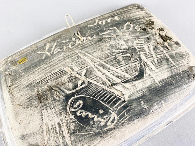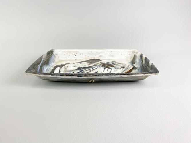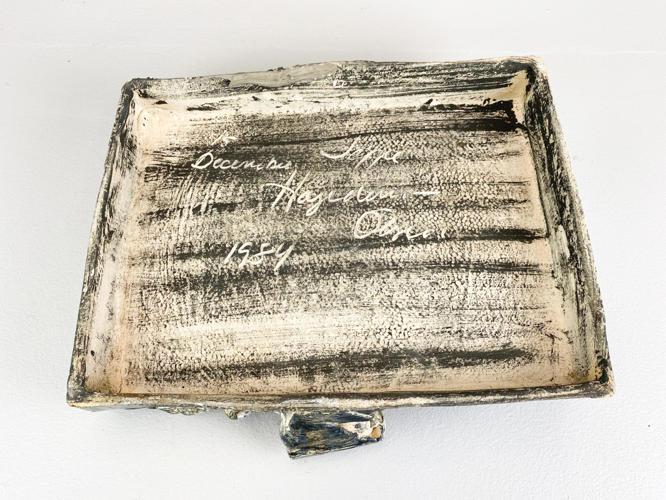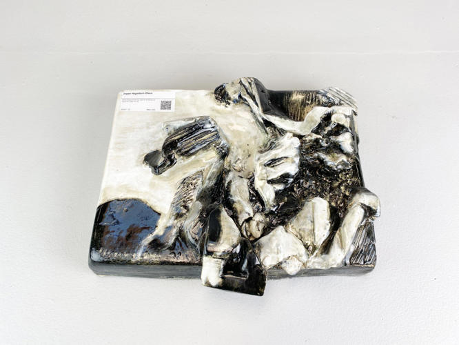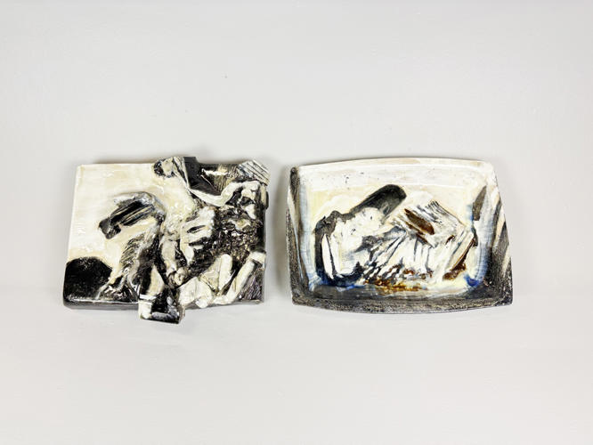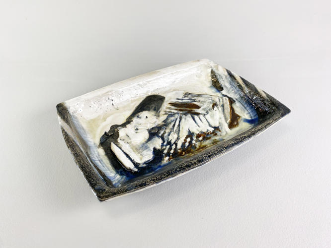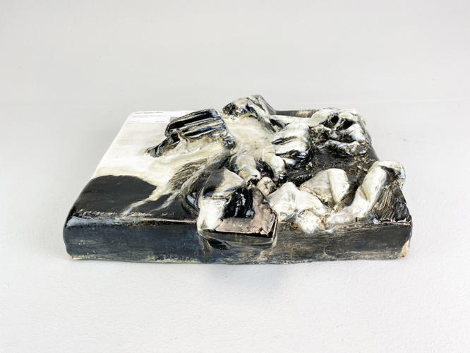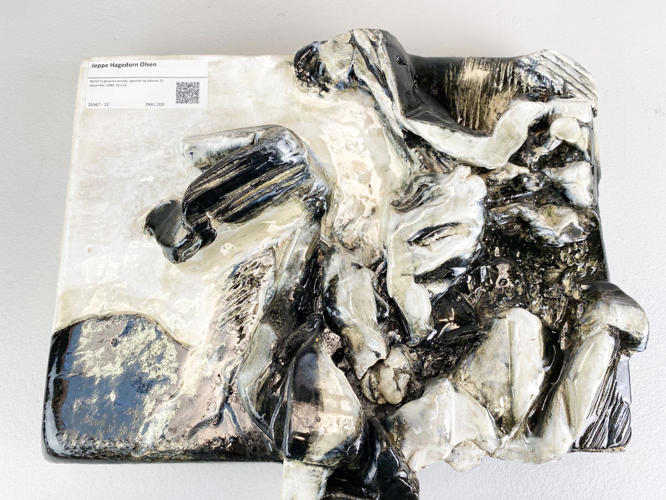 Relief of glazed stoneware, signed and dated 15 December 1984, 35 x 41