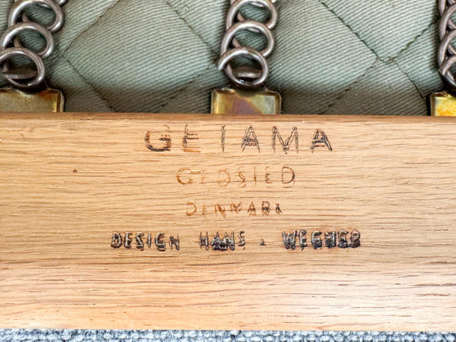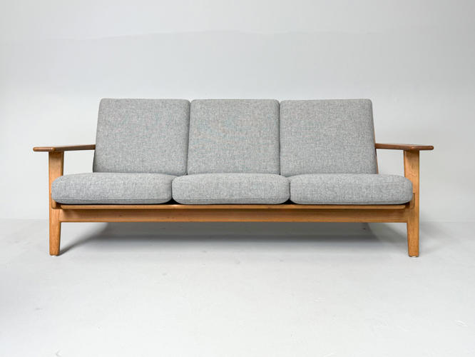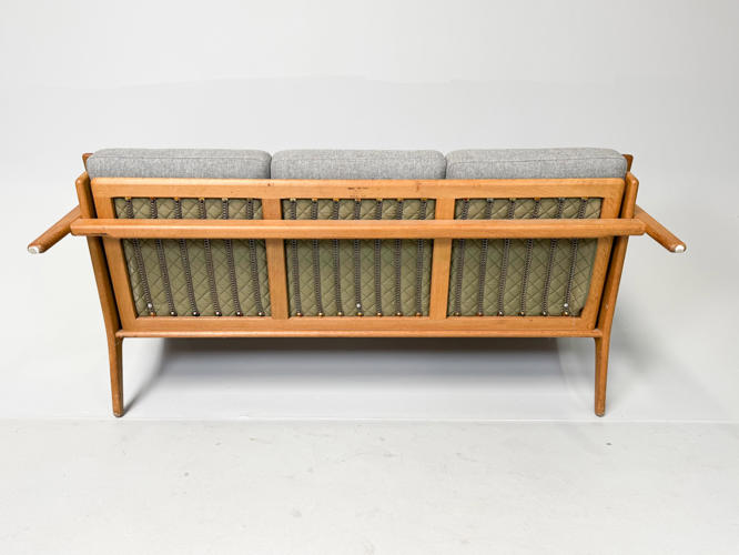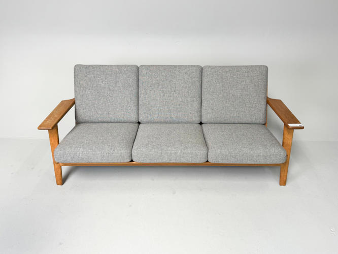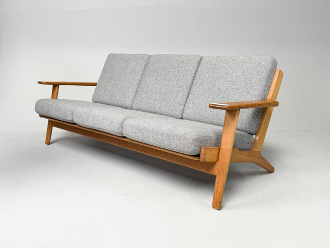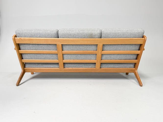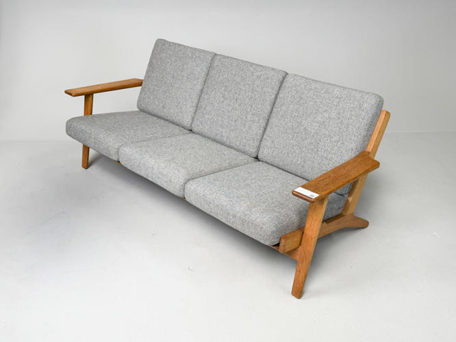 3-seater sofa with oak frame, model GE-290, newer cushions with light Hallingdale wool from 2010, produced by Getama, appears with signs of wear and a few nicks in the frame on the back, l. 180 cm.