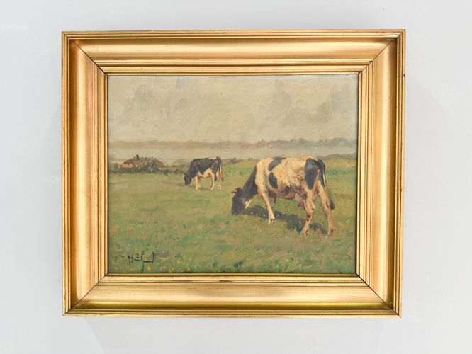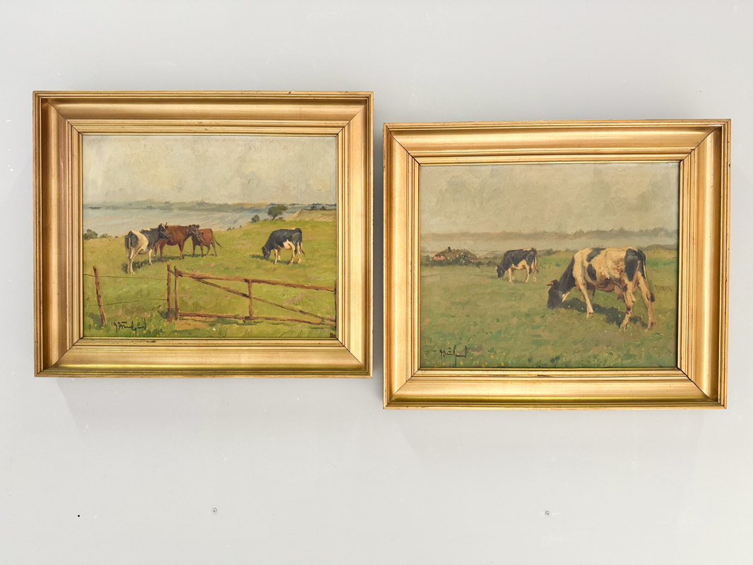 Køer på eng. Signeret G. Bundgaard. 2 malerier. Olie på lærred. 41 x 51 cm.