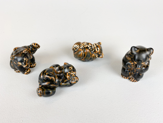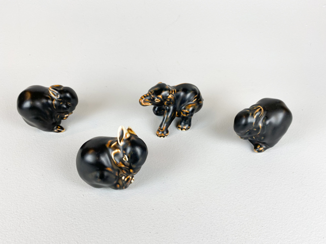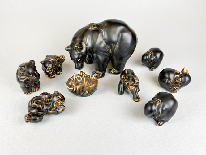 5 bjørne, nr., 3 kaniner, nr. samt elefant, nr., Sung glaseret stentøj, h. 5 - 15 cm.
