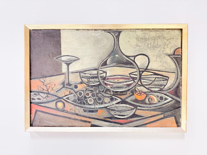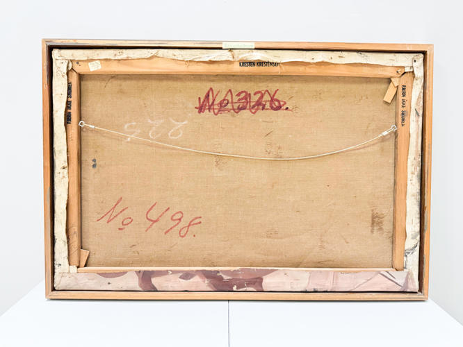 Stilleben. Olie på lærred. Utydeligt signeret. Blændramme betegnet Kresten Krestensen. 46 x 70 cm.