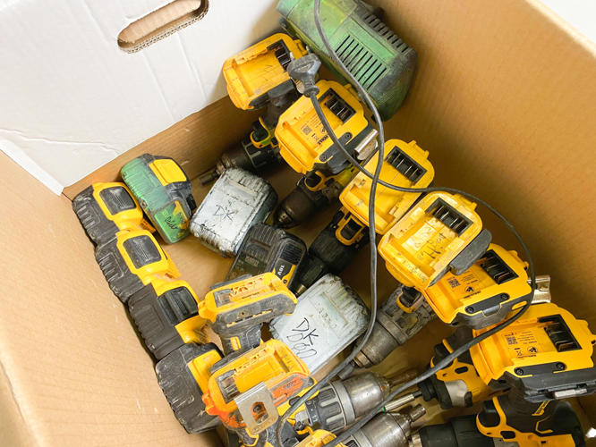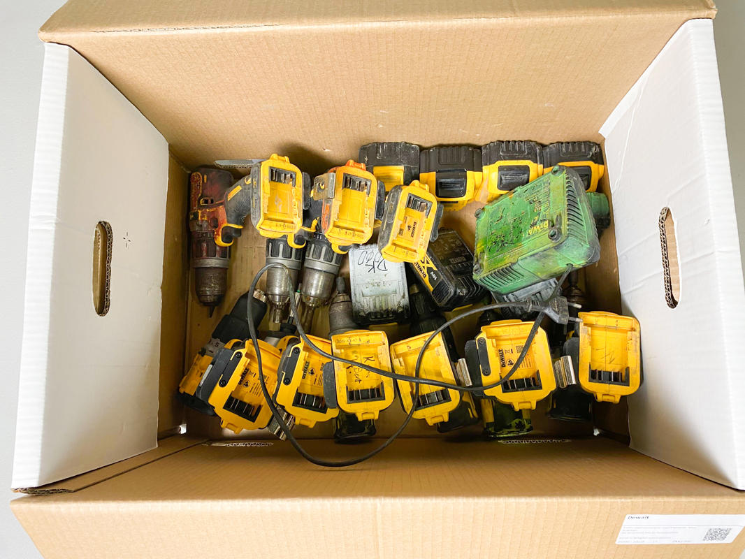 9 akku slagboremaskiner med 8 batterier. Med brugsspor. Der garanteres ikke for funktionalitet.