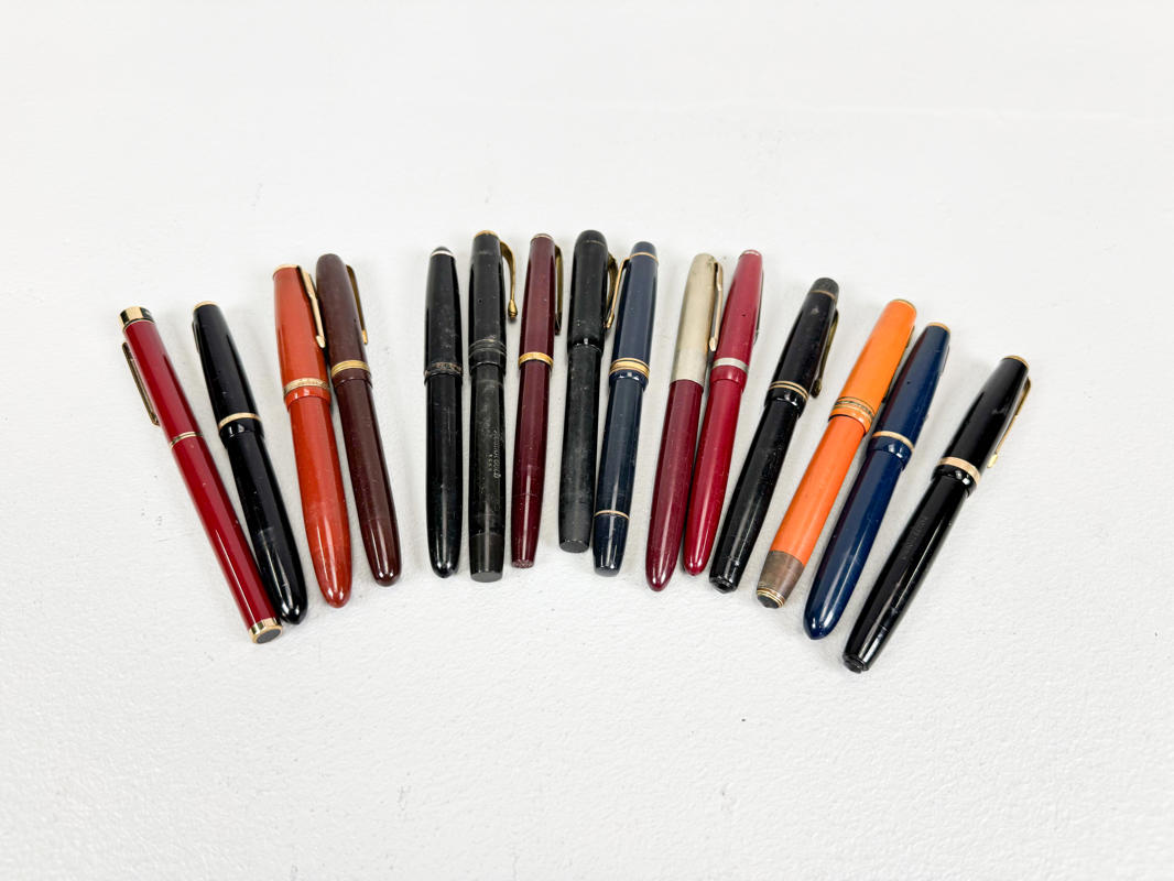 15 Fyldepenne hovedsageligt med spidser af 14 K. guld, stemplet og ikke stemplet, fremstår med defekter samt slid og brugsspor.