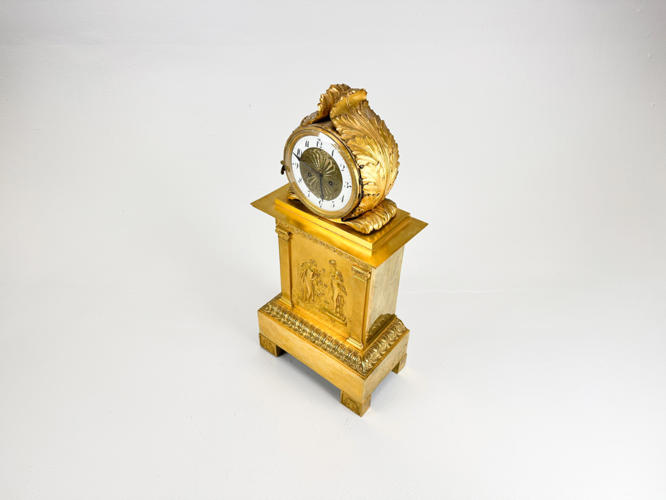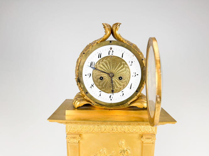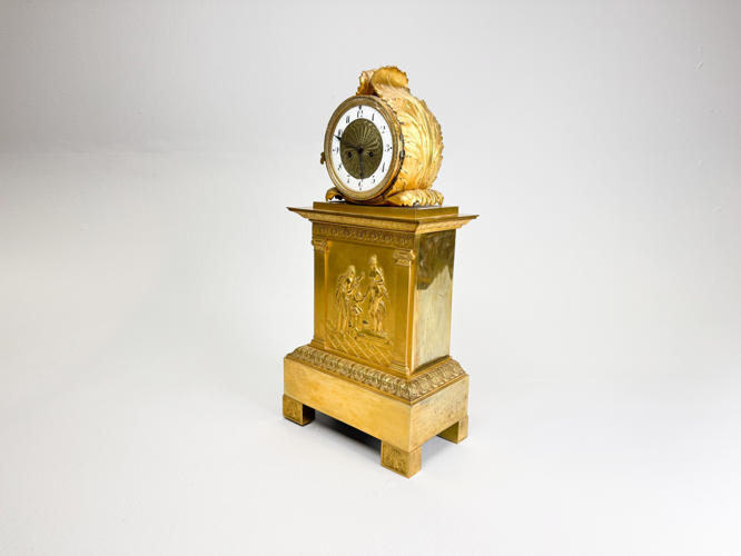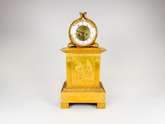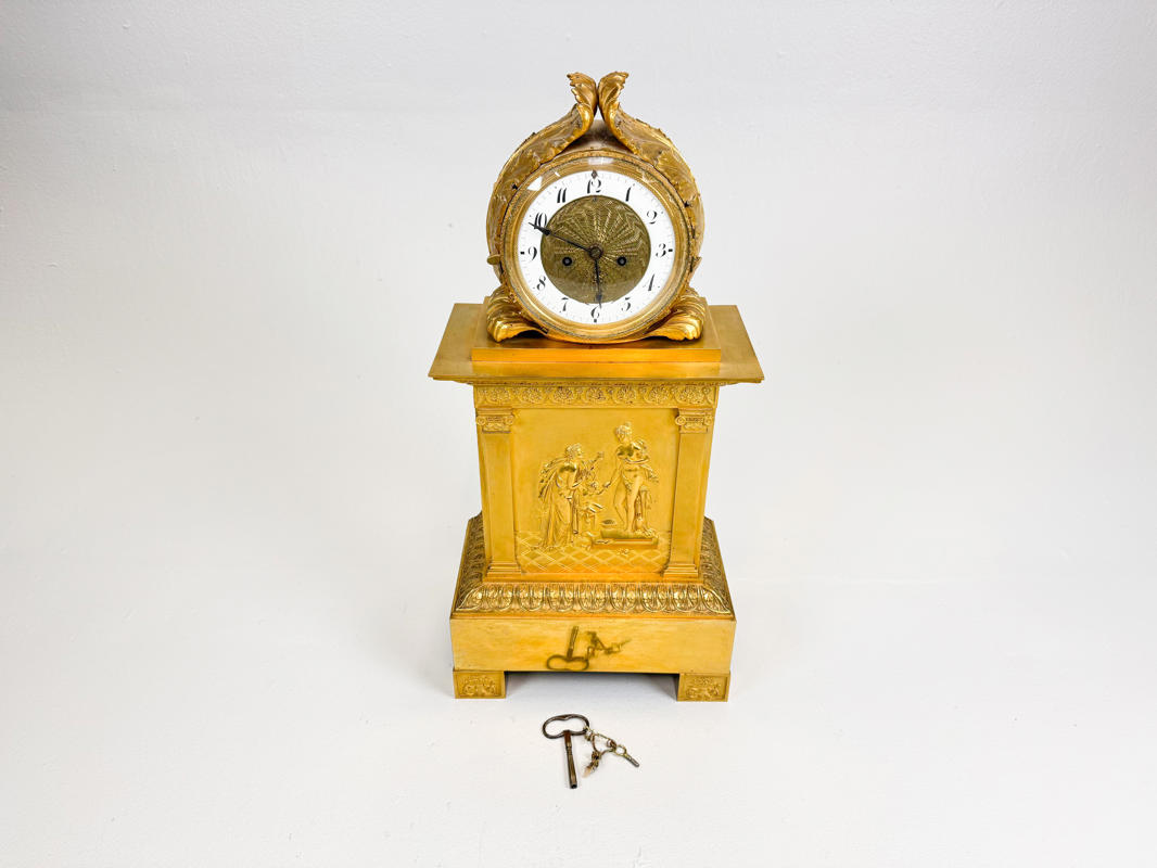 Rigt udsmykket med bladværk, roccailer og "Merkur bringer Bacchus til Ino", h. 51,5 cm., nøgle medfølger, men pendul mangler., fremstår med lette brugsspor.