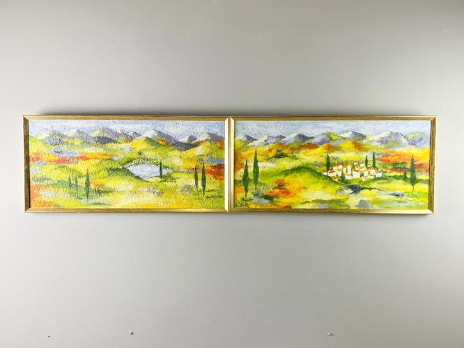 Et landskab i Frankrig samt et Godt landskab i Sydfrankrig, signeret L.S.P og L. Schmidt-P., olie på lærred, 65 x 30
