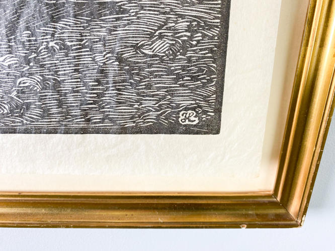 "Vibe". Træsnit på japanpapir. signeret i trykket. Glas i ramme mangler. Ark. 24,5 x 30,5 cm.