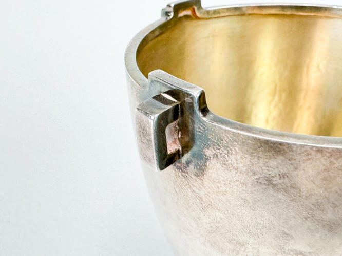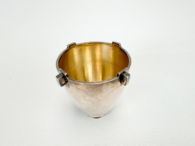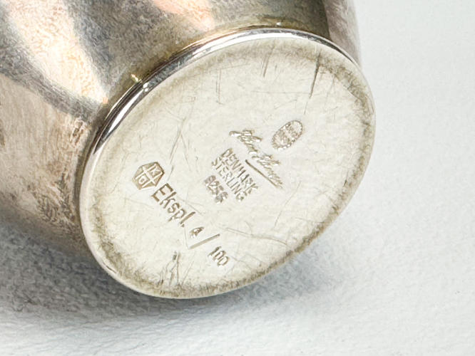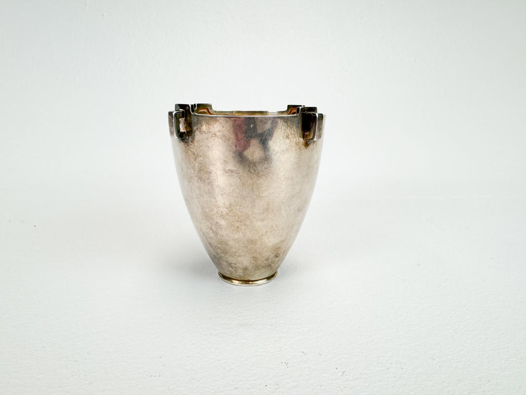 Lille vase / bæger af sterlingsølv, med 4 firkantede hanke. Stemplet i bund hhv. Anno 1988. Hans Hansen. Denmark. Sterling. 925S. KGH i monogram. Ekspl. 4/100. H. 9,4 cm. Vægt ca. 213 g.