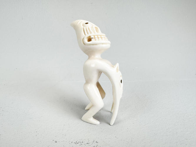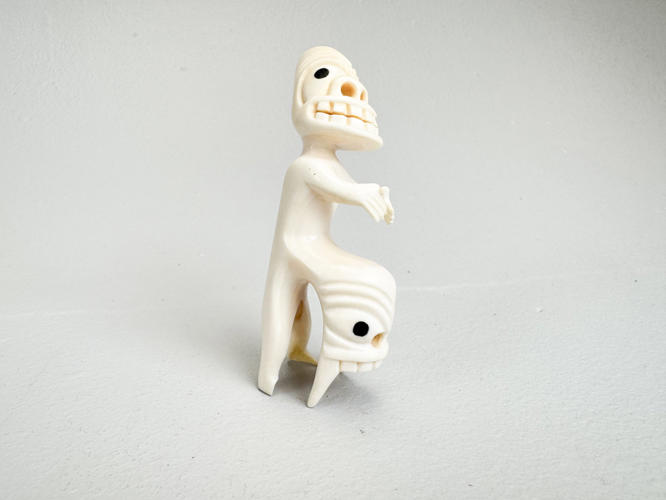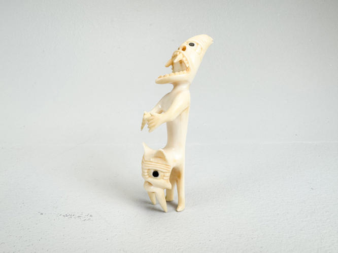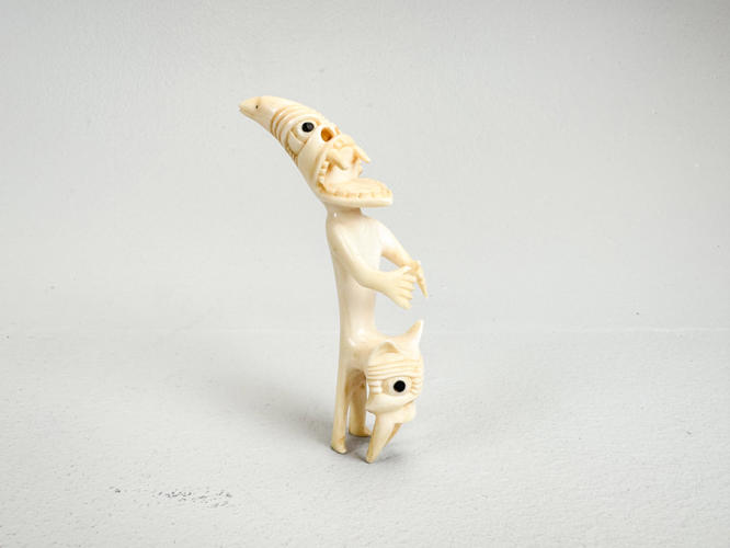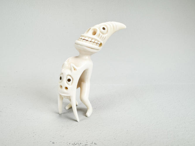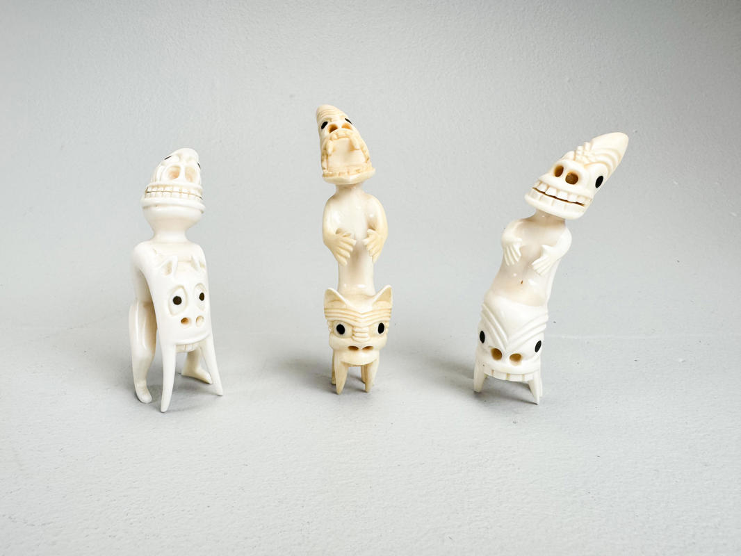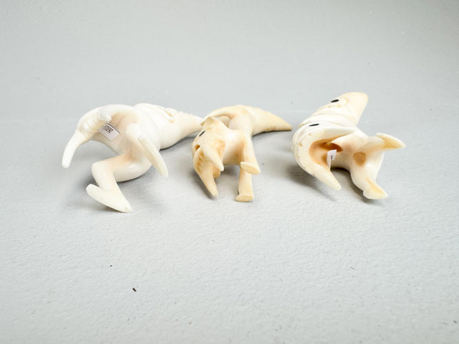 3 Tupilakker i form af fabeldyr. Udført af udskåret kaskelot tand. H. 9 - 11 cm., samlet Vægt 167,9 gr.