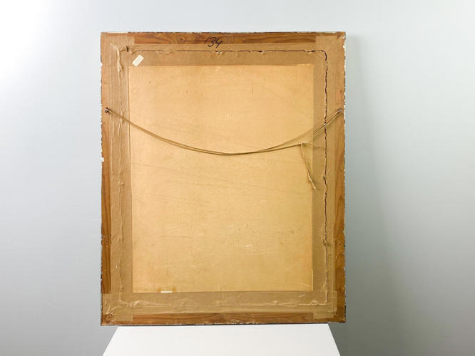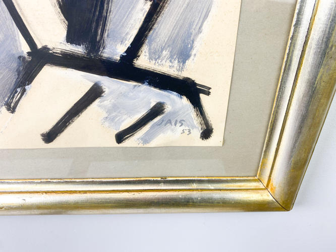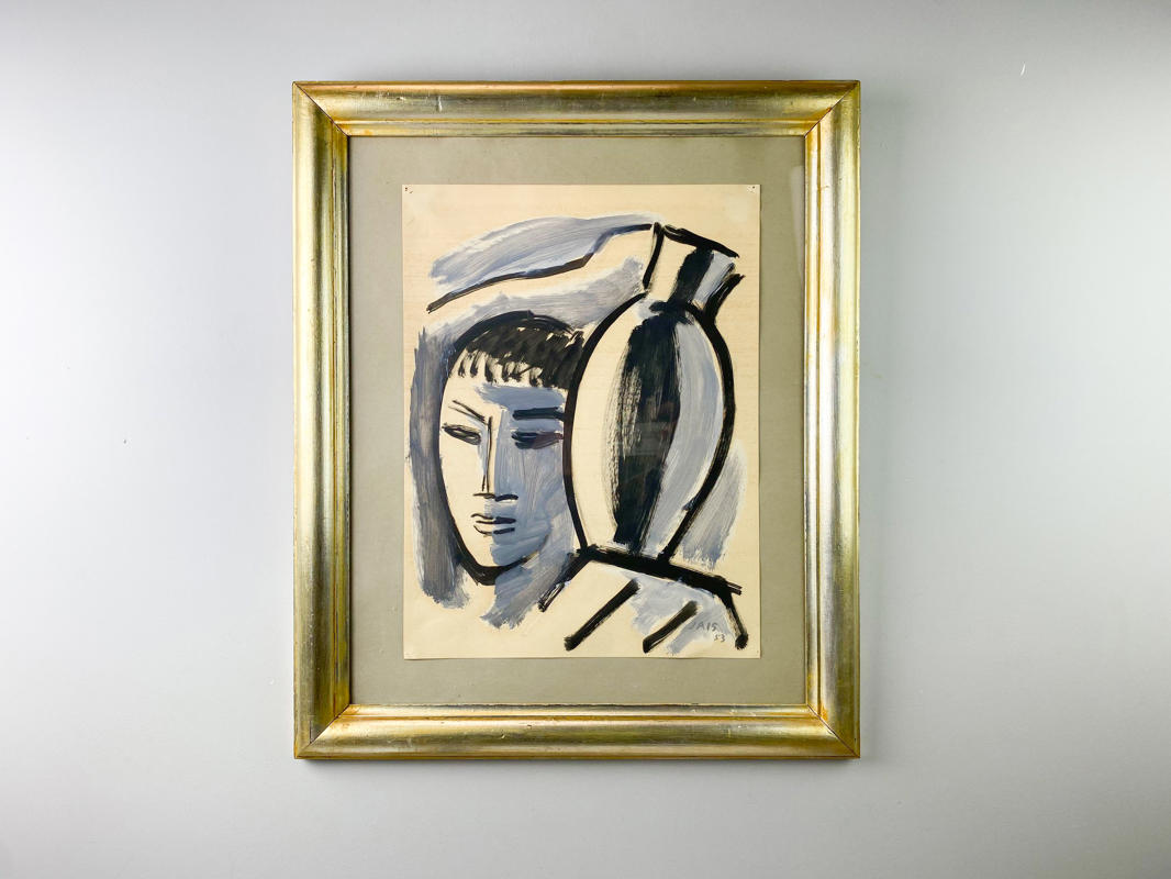 Komposition med ansigt og vase. Olie på papir. Signeret Jais '53. Arkstørrelse 40 x 30 cm. Fremstår med små huller i hjørner (efter tegnestifter).