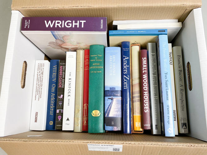 Arne Jacobsen, Den store Møbelguide. Anders Zorn, Francis Bacon, Frank Lloyd Wright, The Kinfolk, Vitruv Om Arkitektur, Foscarini m.m. I alt ca. 17 titler.