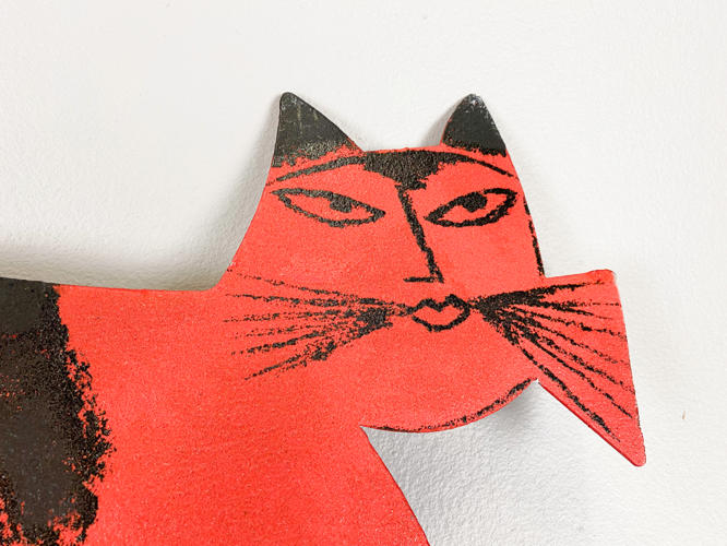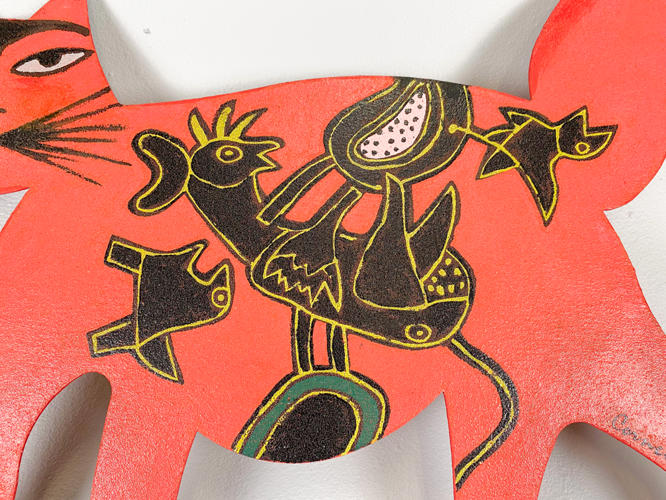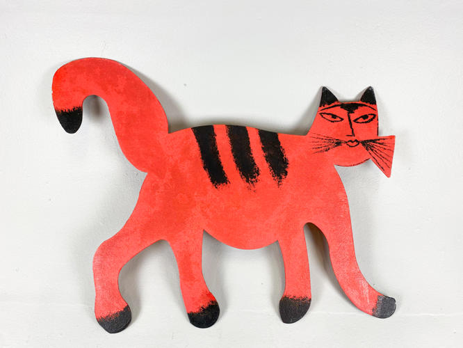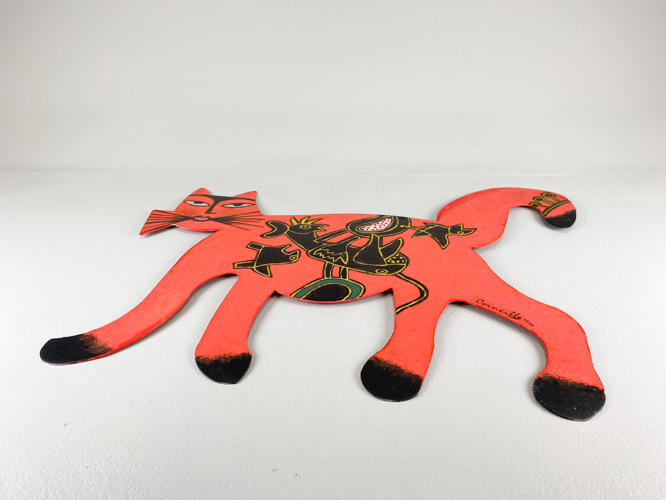 “Walking Cat”. Signeret Corneille, 63/199. Terragrafi på metalplade. Recto et verso. H. 60. B. 72 cm.