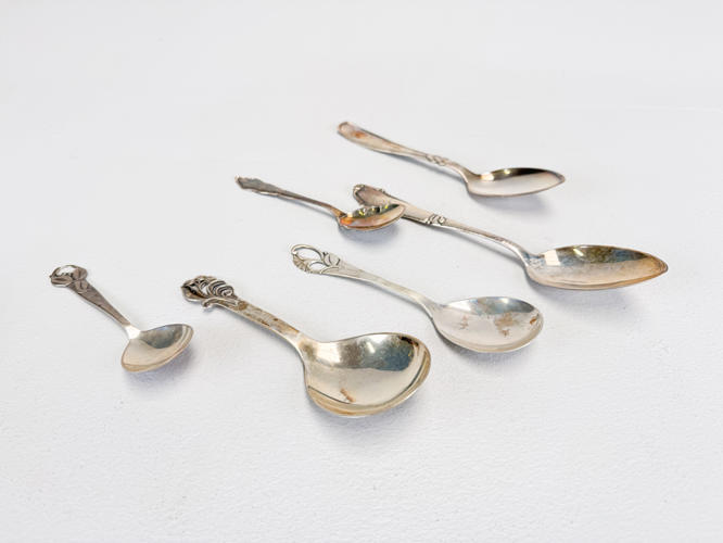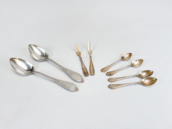 Dele til diverse bestikservicer. Antal dele 35, vægt 931, 9 gram.