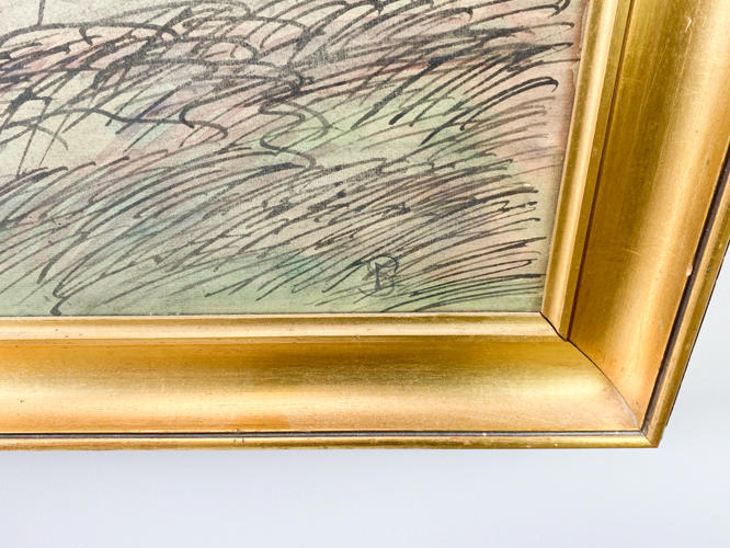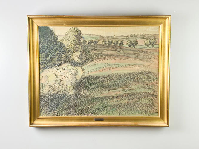 Landskab ved Hindsholm. Signeret i monogram. Akvarel på papir. Lysmål 47 x 62 cm.