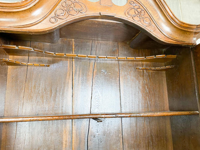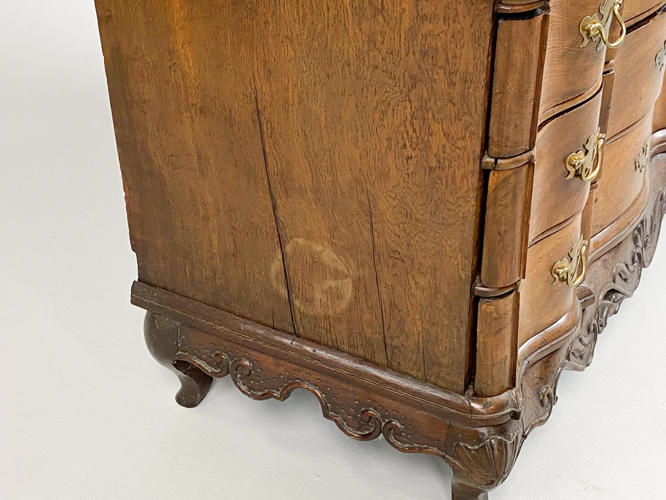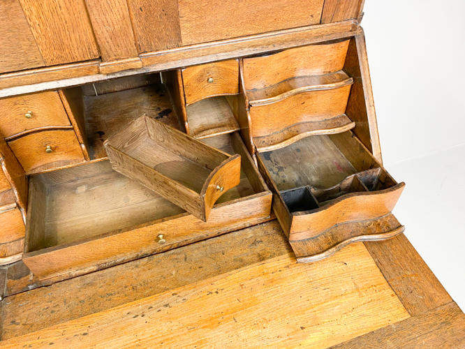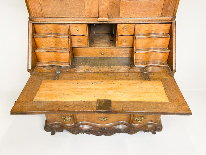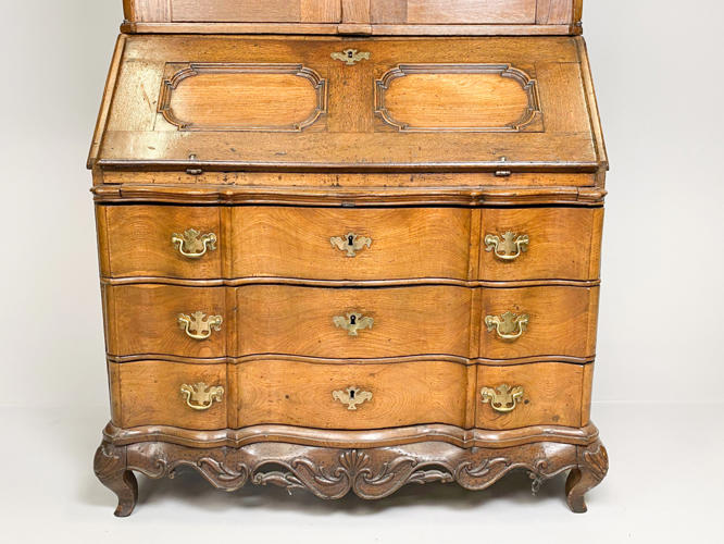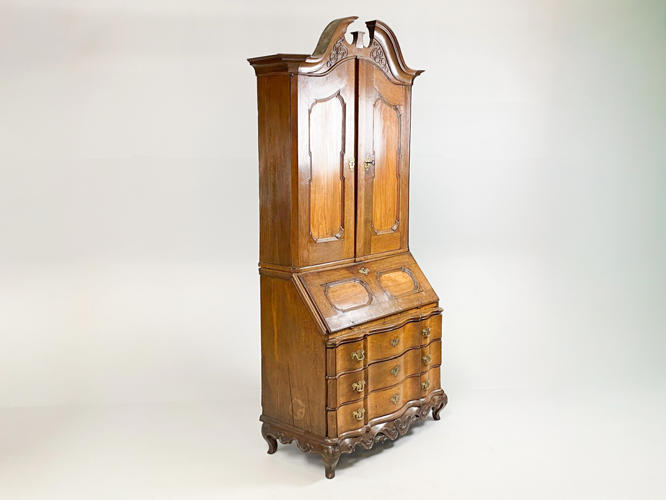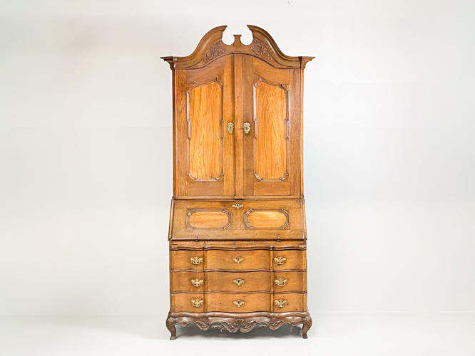 Chatol af elmetræ. Overdel med buet top, herunder to panel døre, bag hvilke hylder og små skuffer samt bestikholdere. Underdel med 3 skuffer samt skrå klap, bag hvilken diverse skuffer og rum. Rigt dekoreret med rocailler. Nøgle medfølger. 117 x 55 x 232 cm.