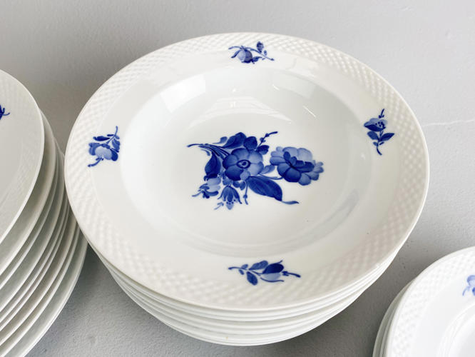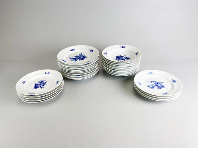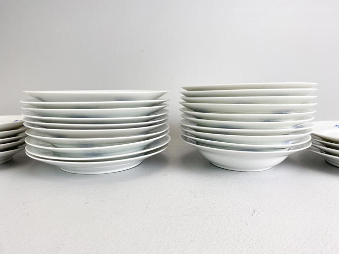 10 Middagstallerkener nr. 8097, diam. 25,5 cm., 9 dybe tallerkener nr. 8106, diam. 23,5 cm. samt 9 frokosttallerkener nr. 8096, diam. 23,5 cm., alle dele 1. sortering.