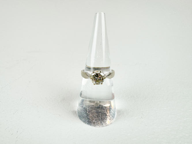 Ring stemplet 750. Str. 50. Ca. 1.10 ct. Farve ca. (G) Top Wesselton. Klarhed ca. VS-VVS. Totalvægt ca. 4,4 g.