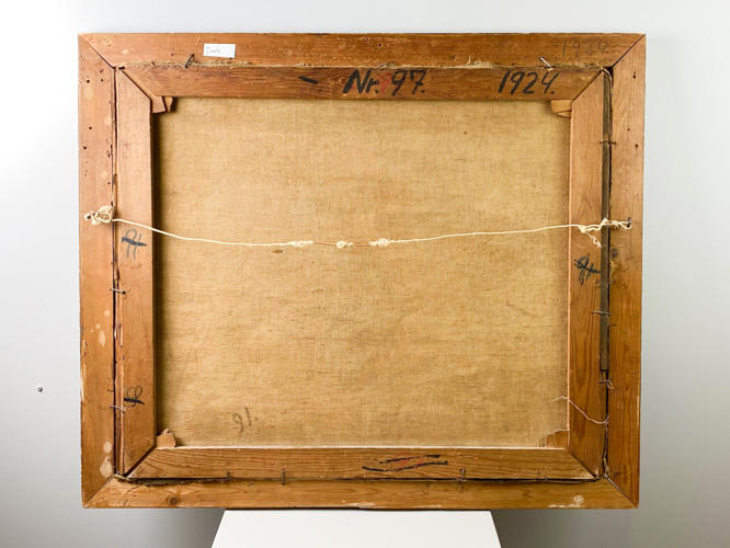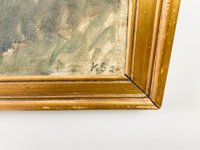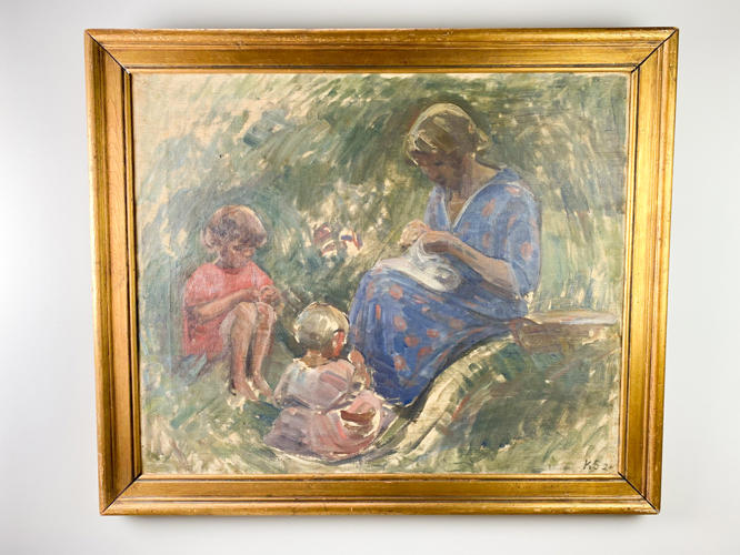 Sommer med moder og 2 børn. Signeret KS '24. Olie på lærred. 61 x 72 cm.