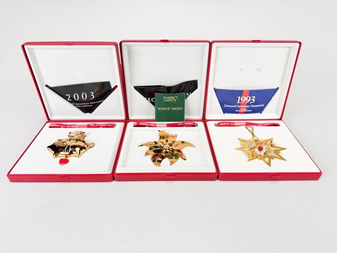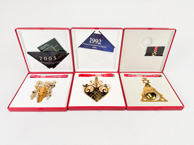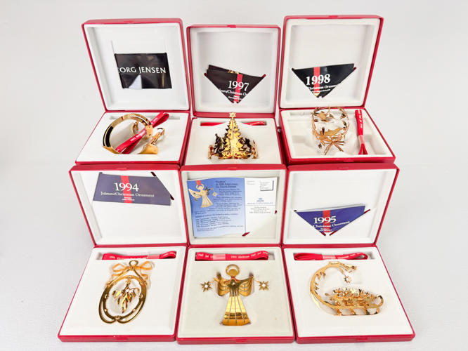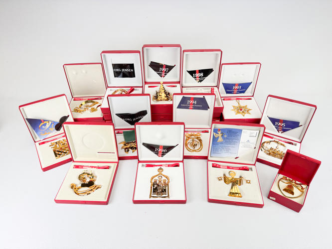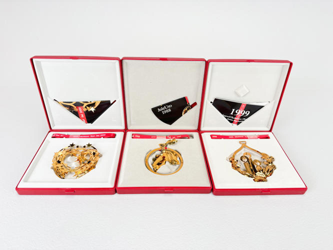 21 Juleuroer, 24 K. forgyldt, 1984-2003 samt 2005, fremstår med original emballage samt med minimale brugsspor.