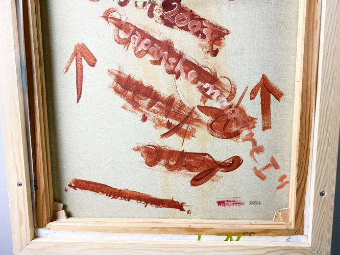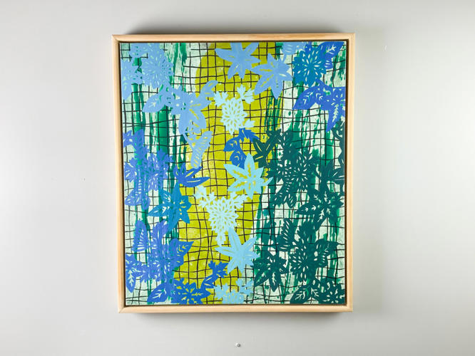"Japanske Mønstre I". Olie/akryl på lærred. 69x59 cm. Auktion over kunstværker og kunstgenstande fra Odense Kommune.