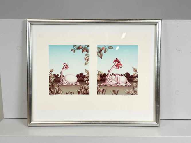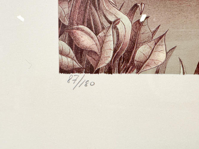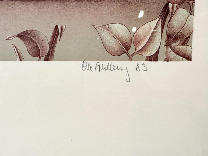 "De 5 Årstider". Litografi i farver. Signeret og dateret Ole Ahlberg 1983. Arkstr. 29,5 x 43 cm. (41 x 50,5 cm.) Auktion over kunstværker og kunstgenstande fra Odense Kommune.