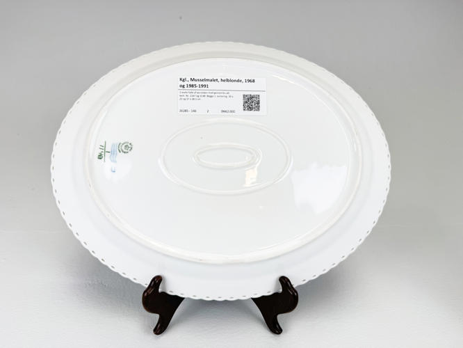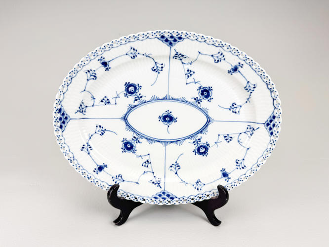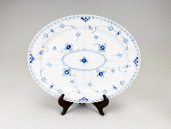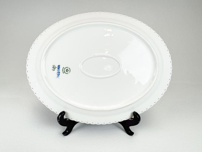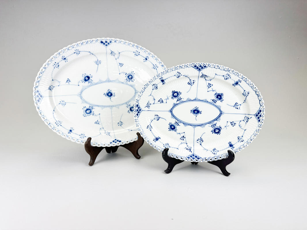 2 ovale fade af porcelæn med gennembrudt kant. Nr. 1147 og 1148. Begge 1. sortering. 30 x 23 og 37 x 28,5 cm.