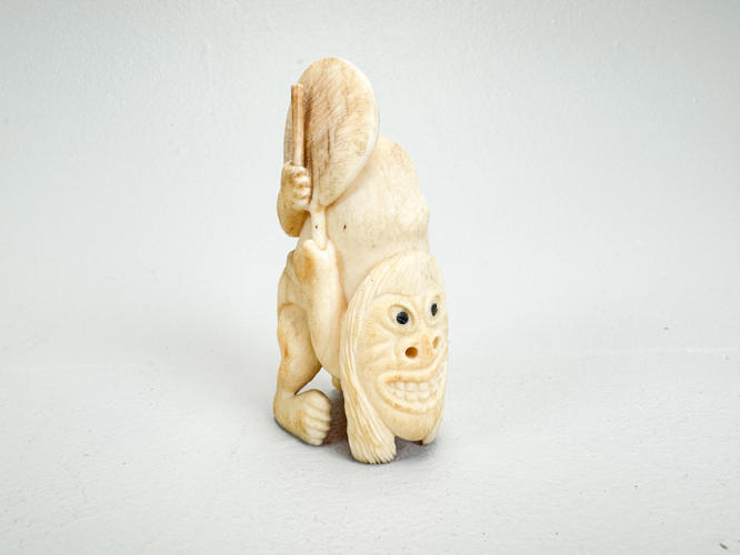 En grønlandsk trommedanser, figur af udskåret kaskelottand. Sign. CK. Vægt 108 gr. H. 9,5 cm.