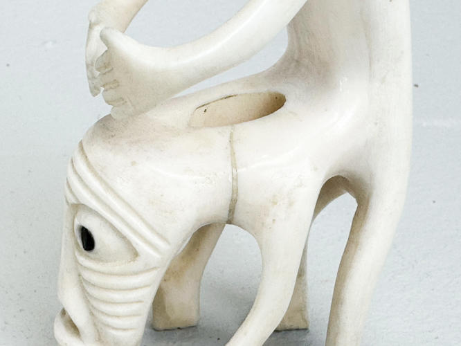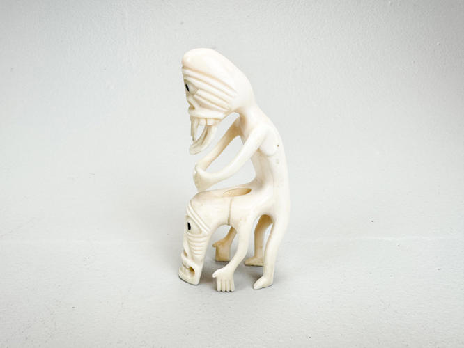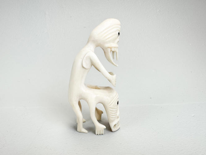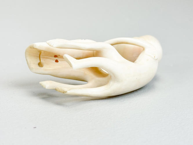 Tupilak i form af fabeldyr. Udført af udskåret kaskelot tand. H. 12 cm. Vægt 107,9 gr., fremstår med en enkelt revne.