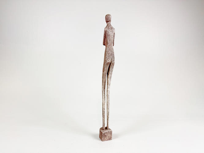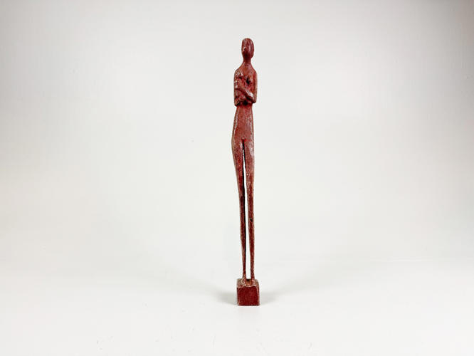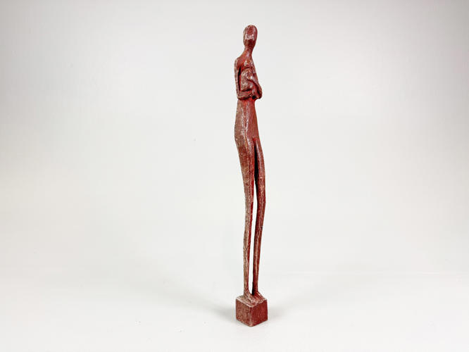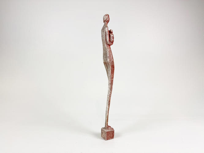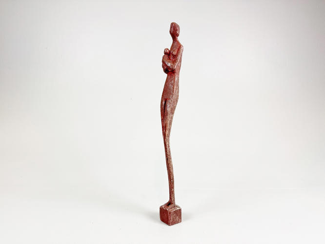 Mor og barn af udskåret og behandlet træ, signeret under bunden, fremstår patineret, h. 42 cm.
