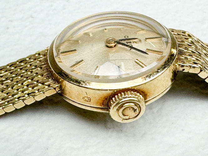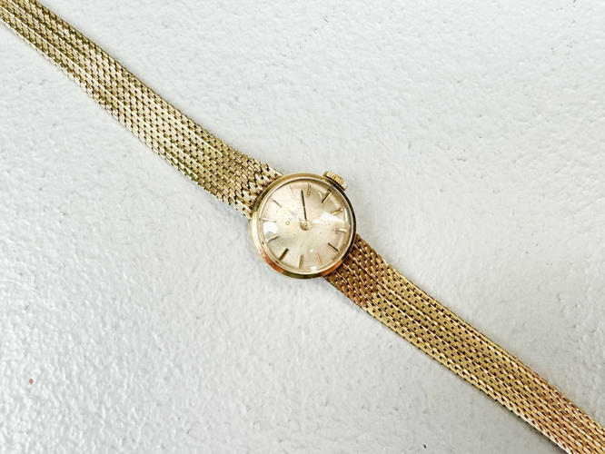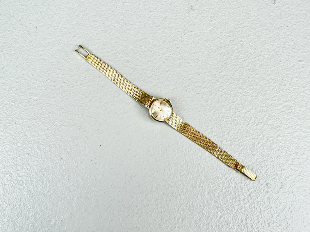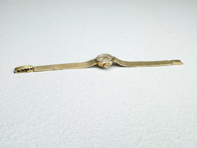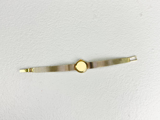 Kasse og lænke af 14 kt. guld. Stemplet med monogram 585 og 14K. Kassediam. 17 mm. Totalvægt ca. 22,6 g.