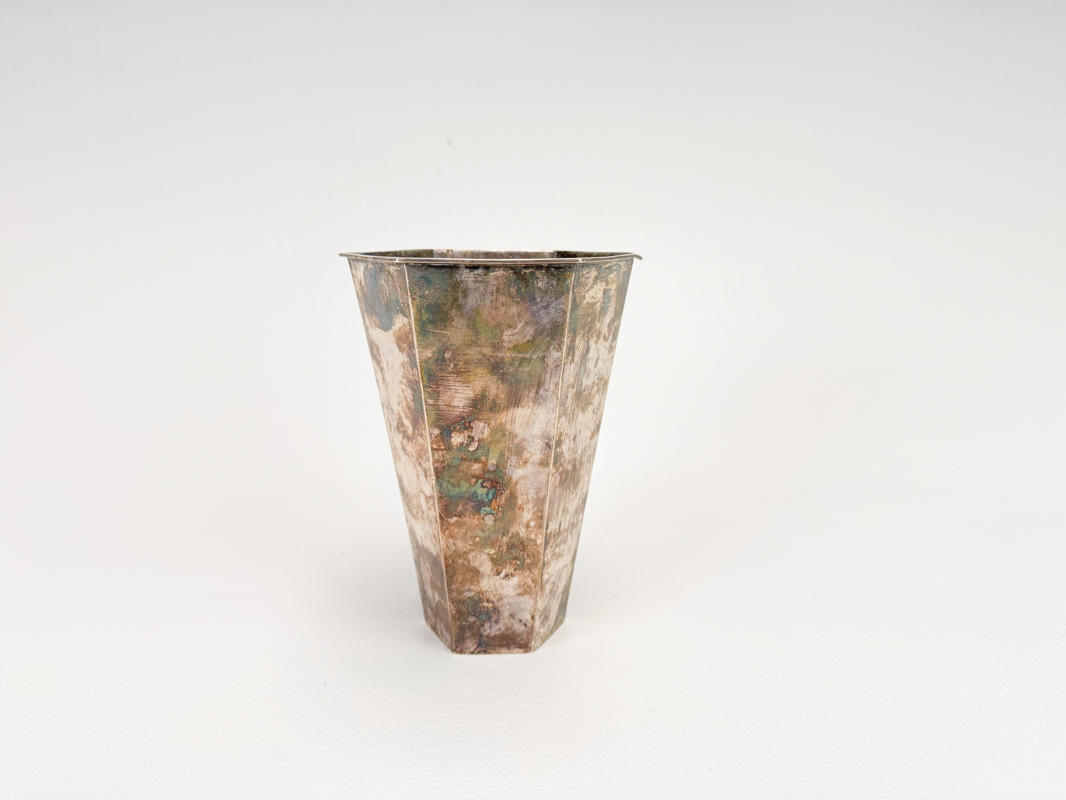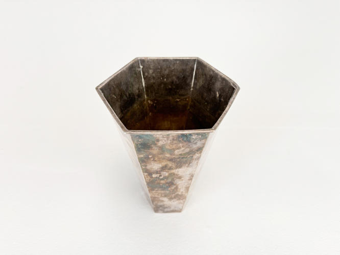 Sekssidet Art deco vase af sølv, 825. Stemplet og dateret 1929. OL. Michelsen samt graveret ærespræmie 1948 i bund. H. 19 cm. Vægt ca. 421,8 g.