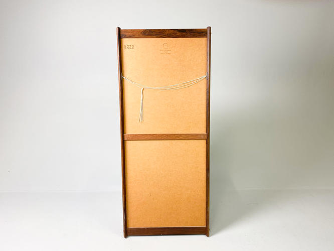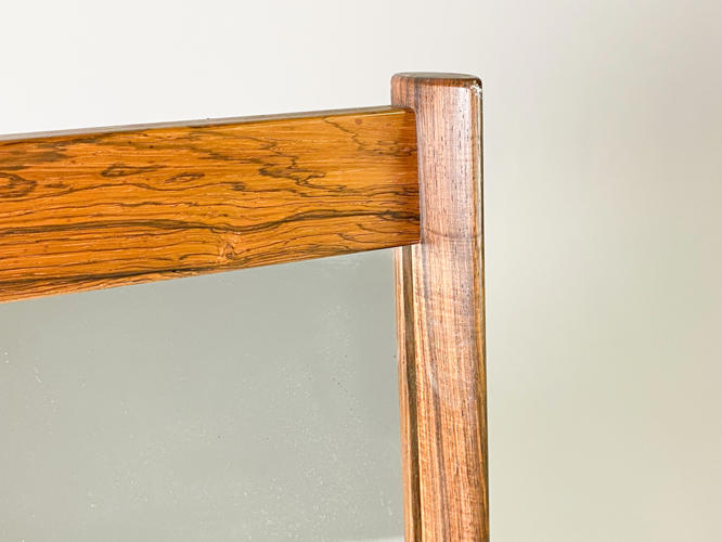 Rektangulært spejl af palisander. Model 220. Udført og mærket hos Aksel Kjersgaard. H. 121. B. 51 cm.