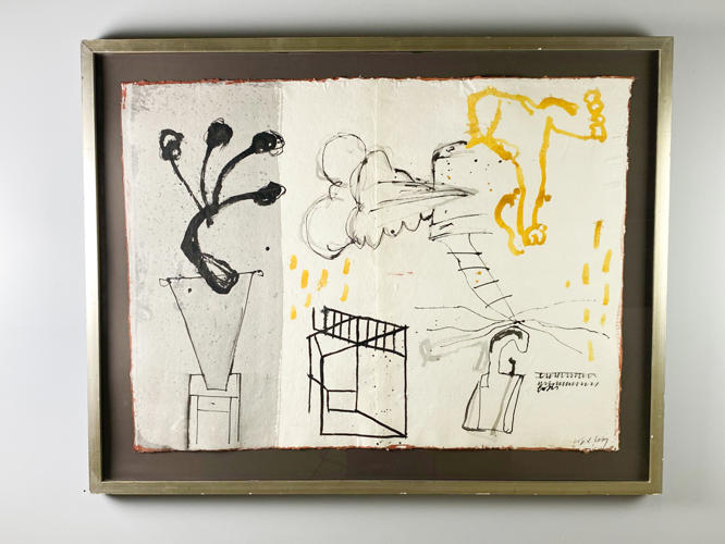 Komposition, akryl på papir i ramme, signeret Kjeld Ulrich, 92 x 112