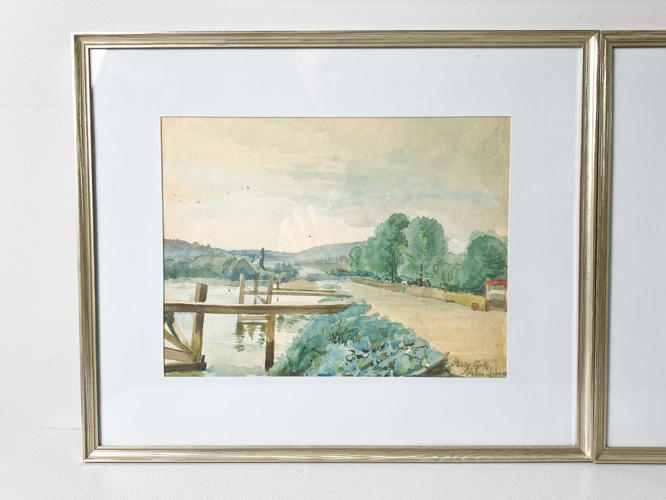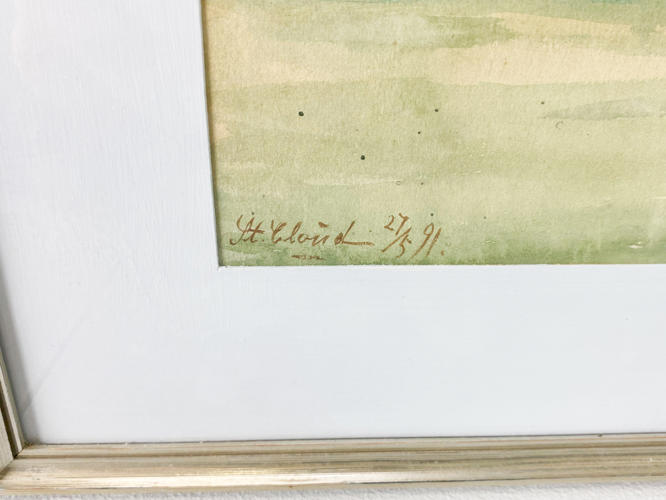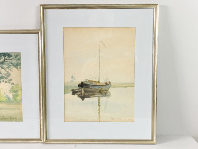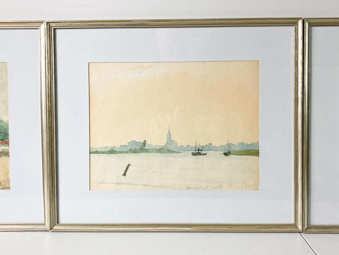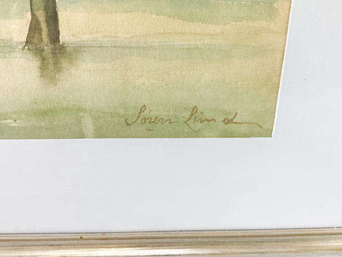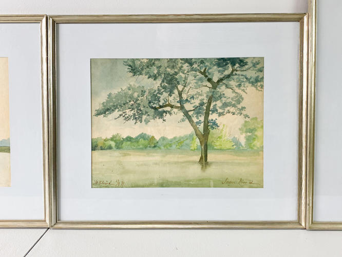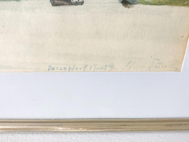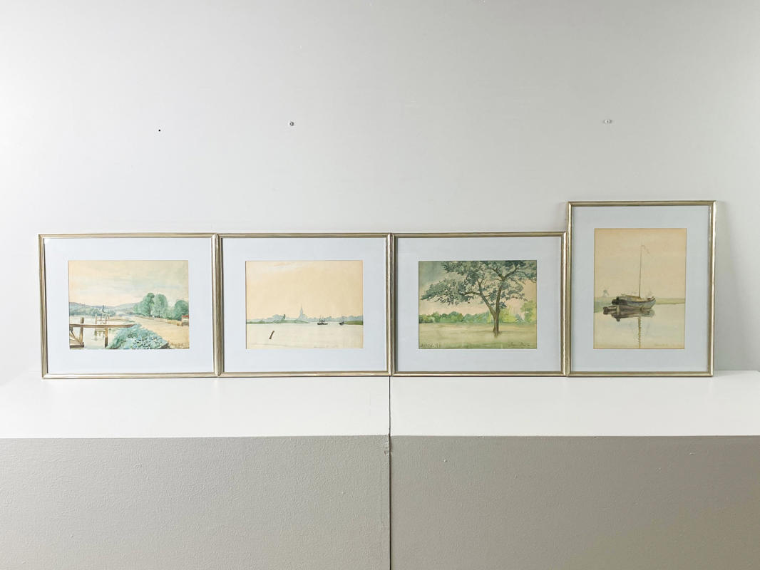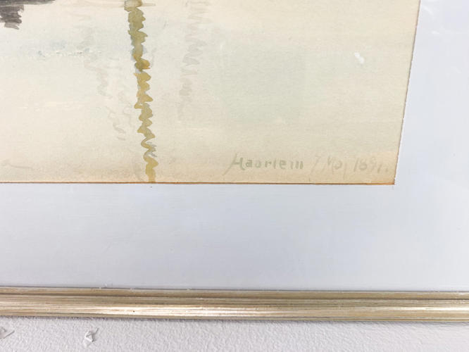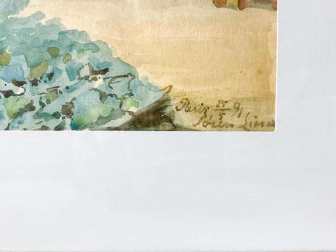 Partier fra studierejse i 1891. 4 akvareller på papir. Signeret Søren Lund. Haarlem 7. Maj. Paris 25/5. St. Cloud 27/5 og Düsseldorf 17. Juni. Lysmål 19 x 25 cm.