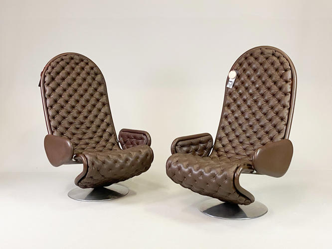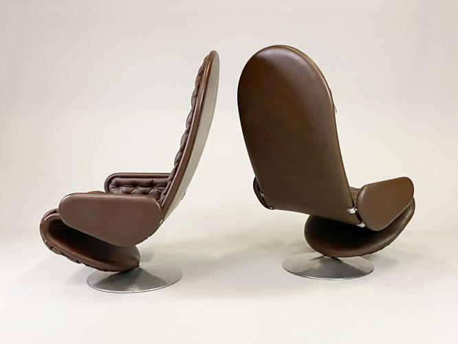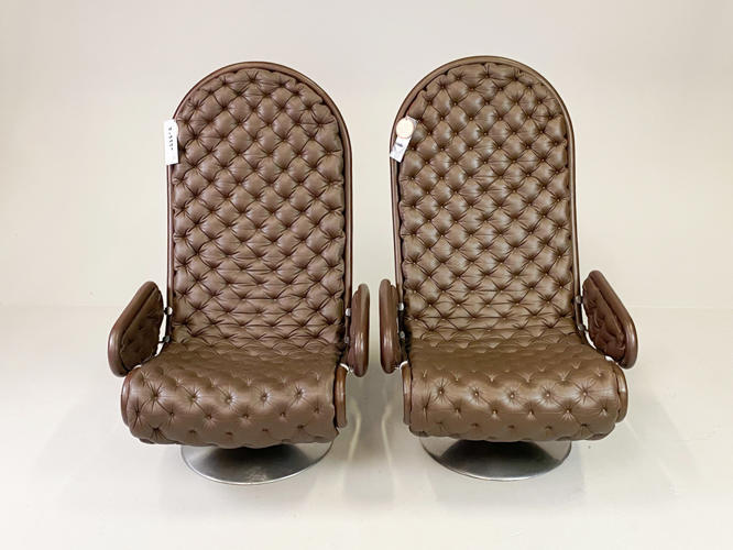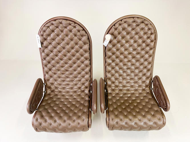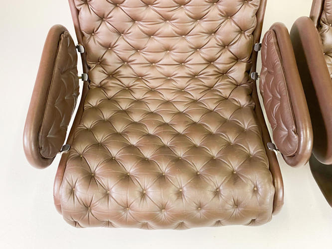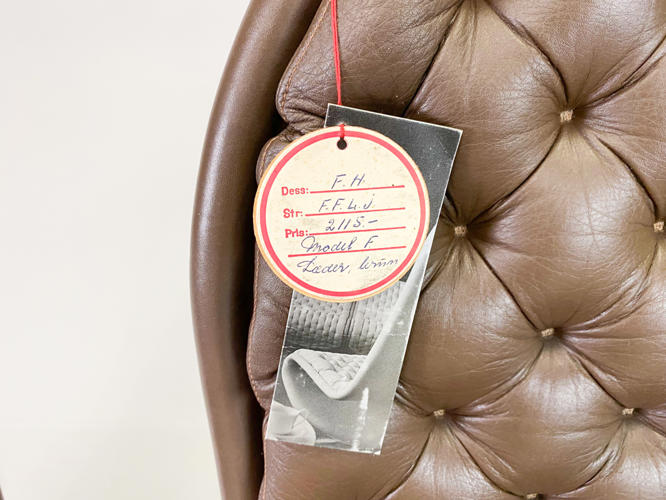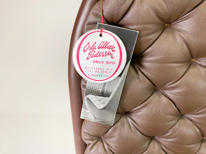 Par højryggede lænestole model 1-2-3, brunt skind, fin stand.... tidligere hidhørende Albæk møbelfabrik´s familien