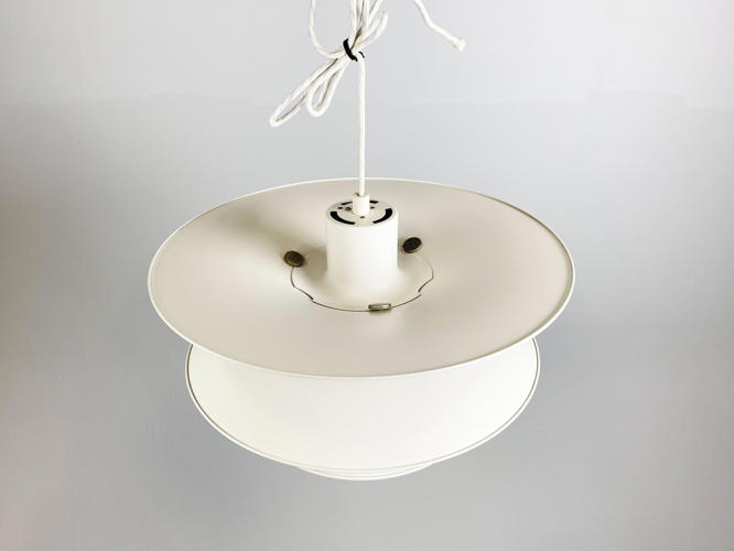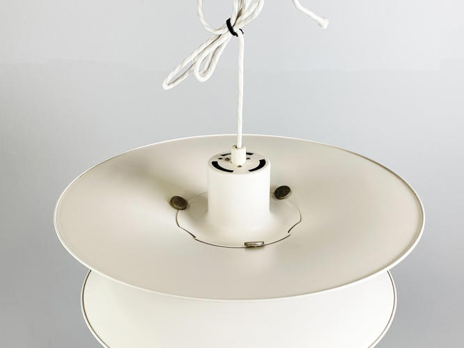 Charlottenborg pendel, hvidlakerede skærme af metal. Fremstillet hos Louis Poulsen. Diam. 47 cm. Stedvise alm. brugsspor.