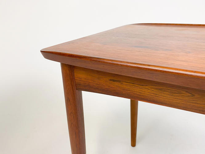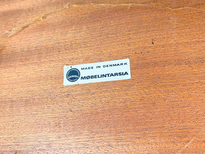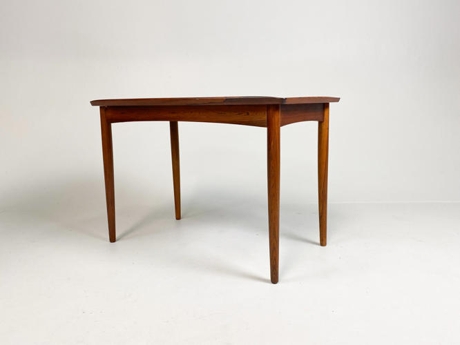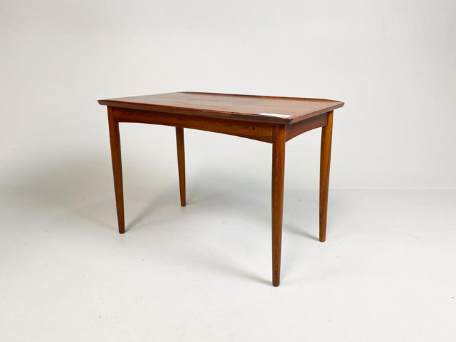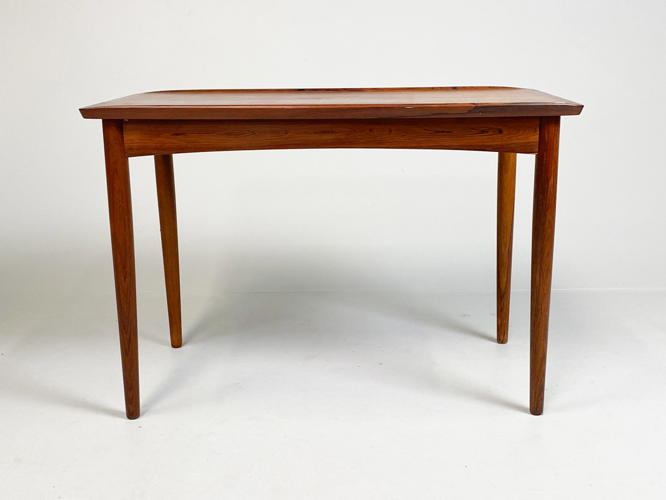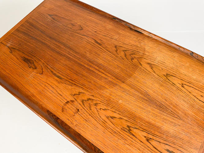Sofabord af massivt og finéret palisander. Fremstillet hos Intarsia Ringe, 74 x 43 x 50 cm. Brugsspor, skjolder og enkelt hak i plade.