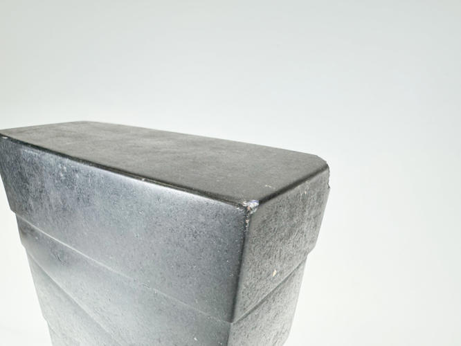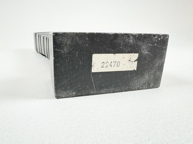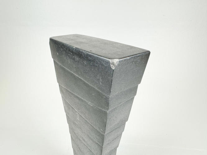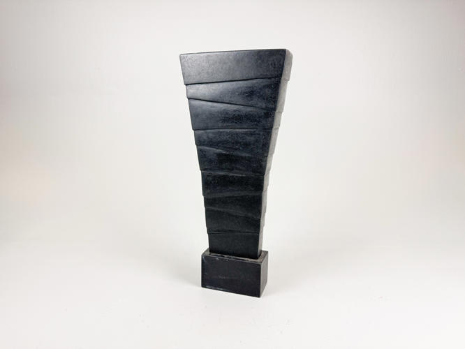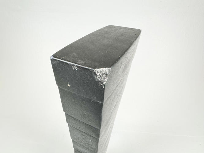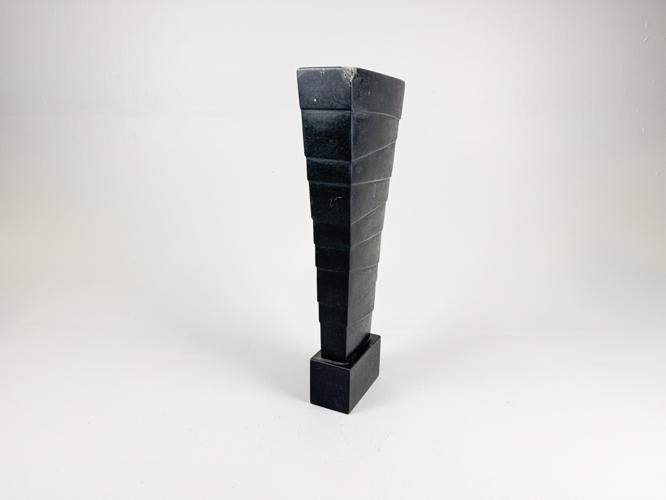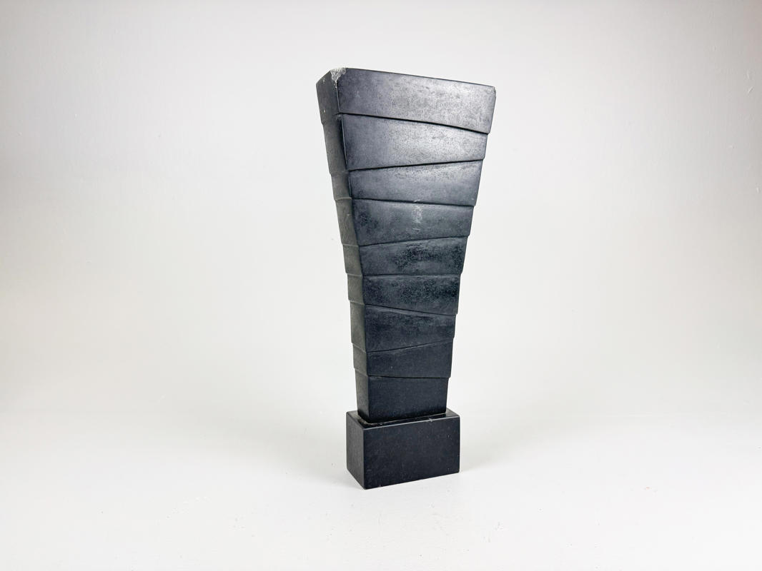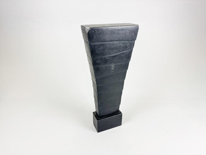 Skulptur af sort poleret diabas (magmatisk bjergart). Usigneret. H. 48 cm. B. 20 cm. D. 7 cm. Usigneret. Fremstår med 2 afslag på hjørner. Auktion over kunstværker og kunstgenstande fra Odense Kommune.