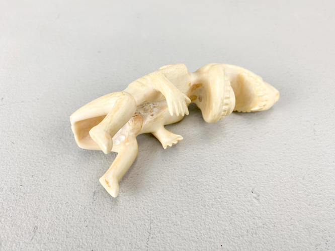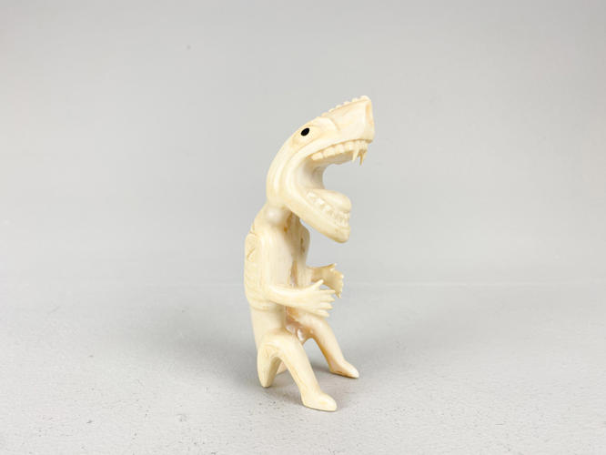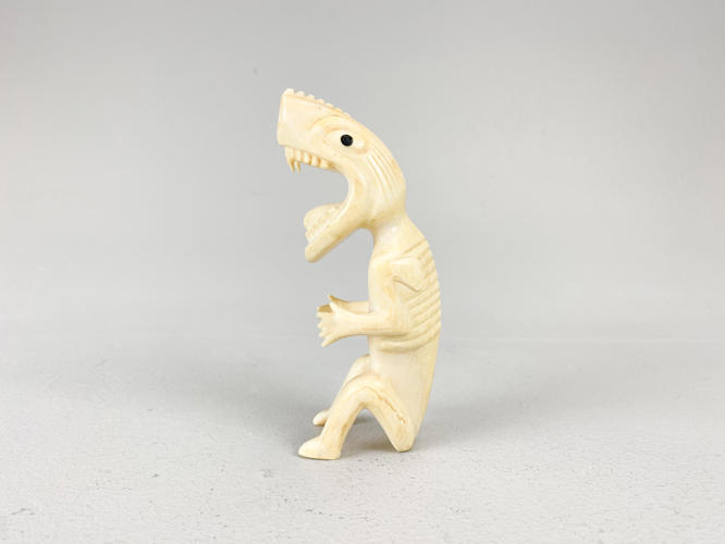 Tupilak i form af fabeldyr. Udført af udskåret tand. H. 13 cm.