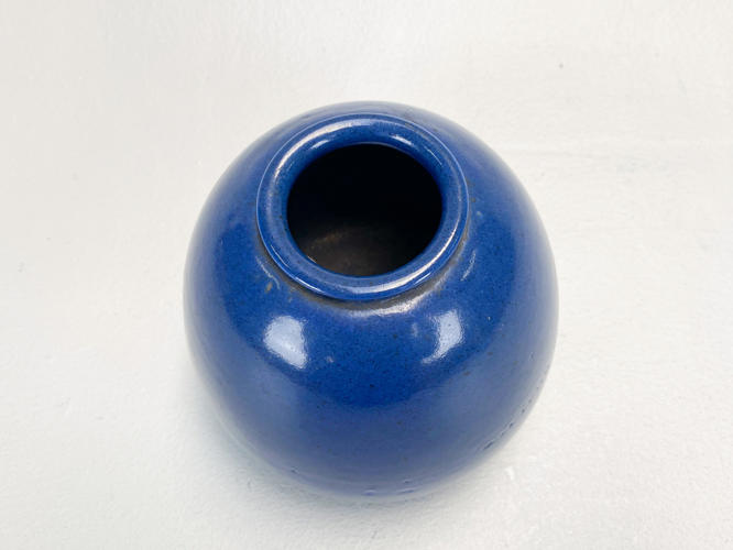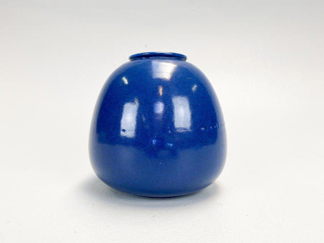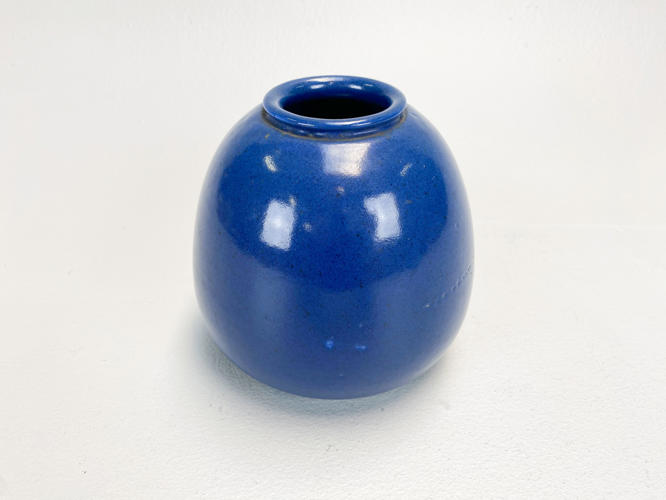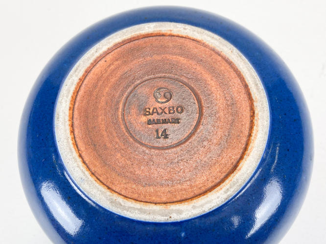 Vase af stentøj. Stemplet i bund med Saxbo Danmark nr. 14. H. 17 cm. Diam. 17 cm. Fremstår med enkelte glasurbobler.
