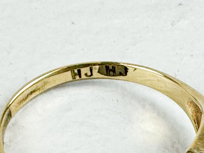 Stemplet HJ HJ. Str. 54. Spinel fremstår med slid. Totalvægt ca. 2 g.