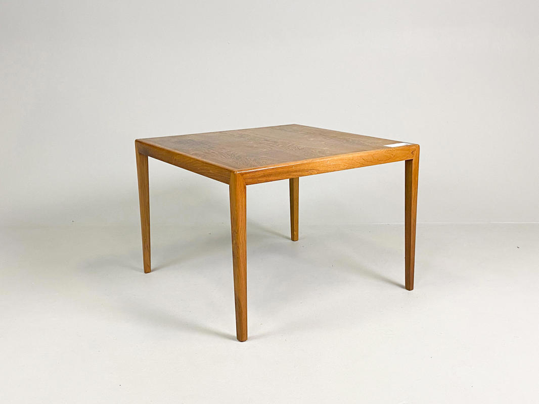 Sofabord af massivt og finéret palisander. Fremstillet hos CF. Christensen, 70 x 70 x 50 cm. Brugsspor og skjolder.