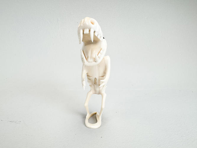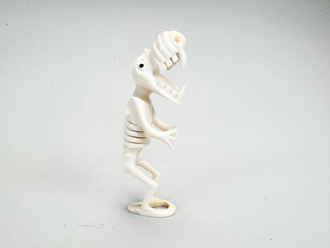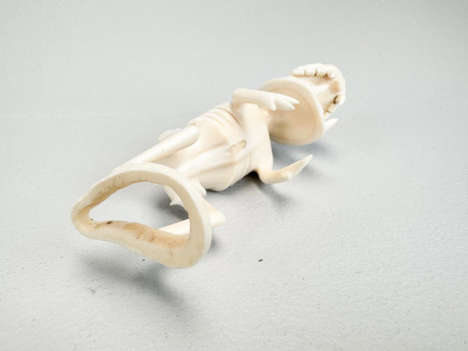 Tupilak i form af fabeldyr. Udført af udskåret kaskelot tand. H. 16 cm. Vægt 146 gr.