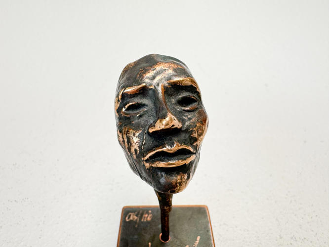 Hermia, maskeskulptur af bronze, signeret Jens Galschiøt, nr. 94/300, h. 8 cm.