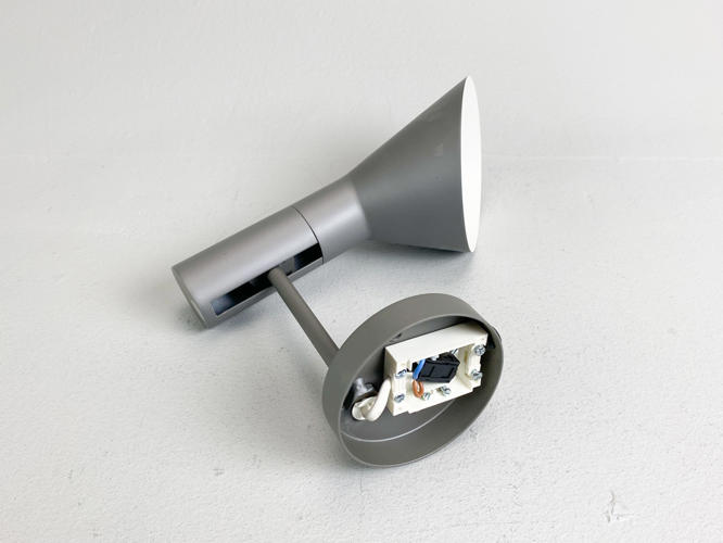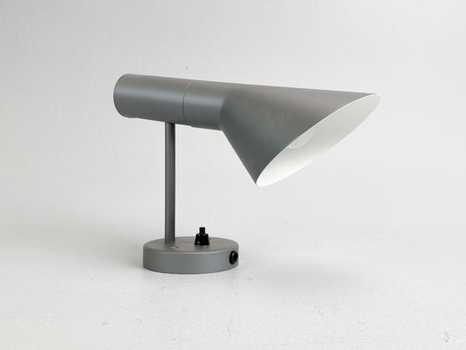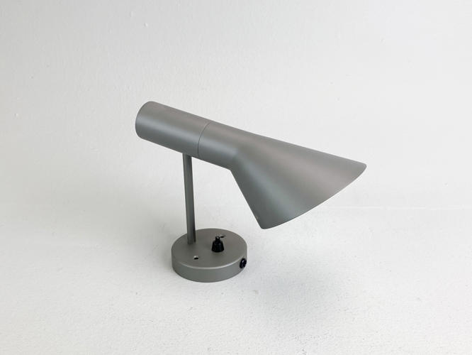 AJ væglampe af grålakeret metal. Produceret hos Louis Poulsen. H. 25 cm.