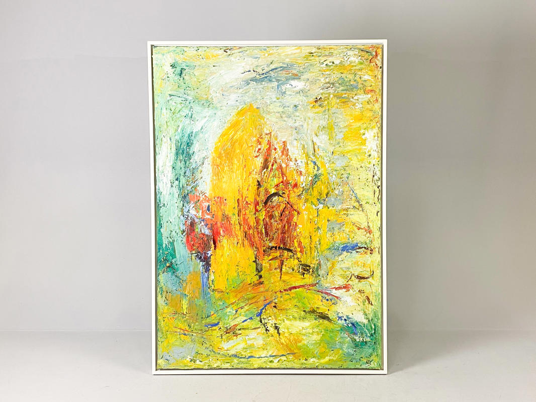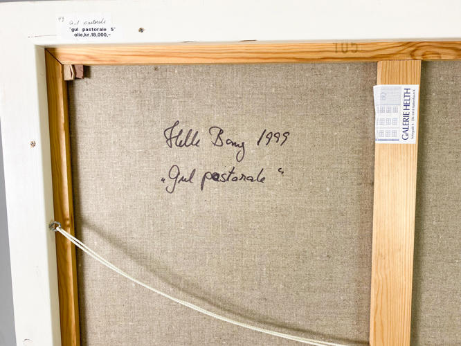 Komposition. Olie på lærred. 'Gul Pastorale'. Katalog og kvittering fra Galleri Helth, Kbh. medfølger. Sign. HB. 150 x 105 cm. (155 x 110 cm.)