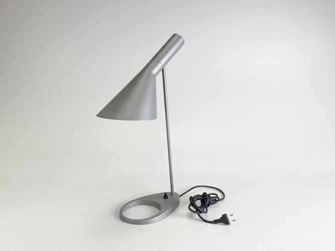 AJ bordlamper af grålakeret metal. Produceret hos Louis Poulsen. H. 55 cm.