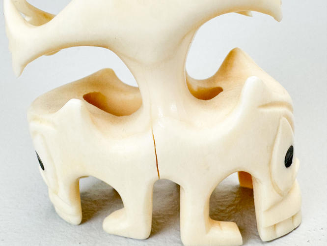 Tupilak i form af fabeldyr. Udført af udskåret kaskelot tand. H. 12,5 cm. Vægt 145 gr., fremstår med lille revne.